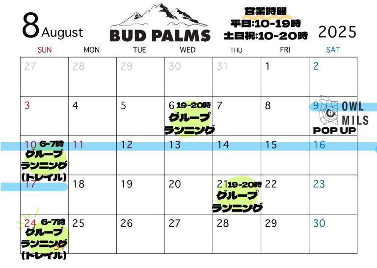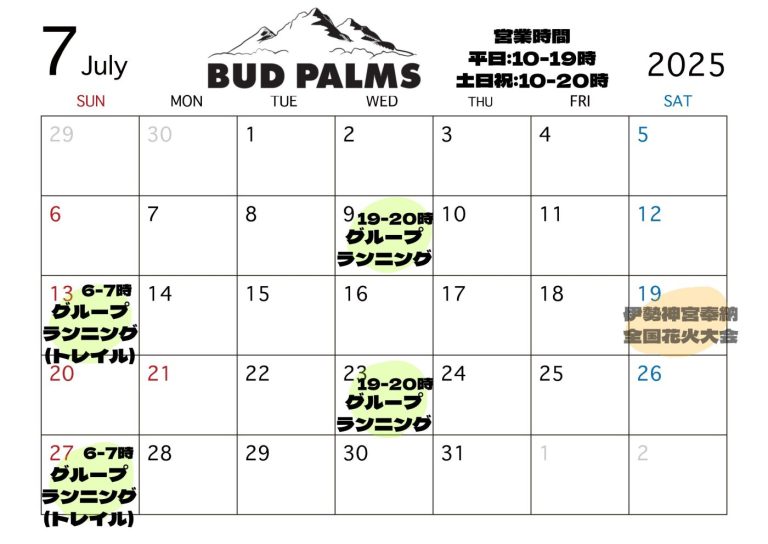 7月のカレンダーです。*先月より平日の営業時間を「10:00~19:00」に変更しております。ご理解とご周知の程よろしくお願いいたします。*……
